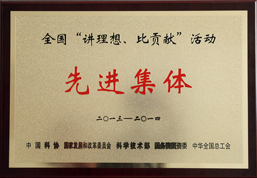公司榮獲2013-2014年度全國“講理想、比貢獻(xiàn)”活動(dòng)先進(jìn)集體稱號(hào)